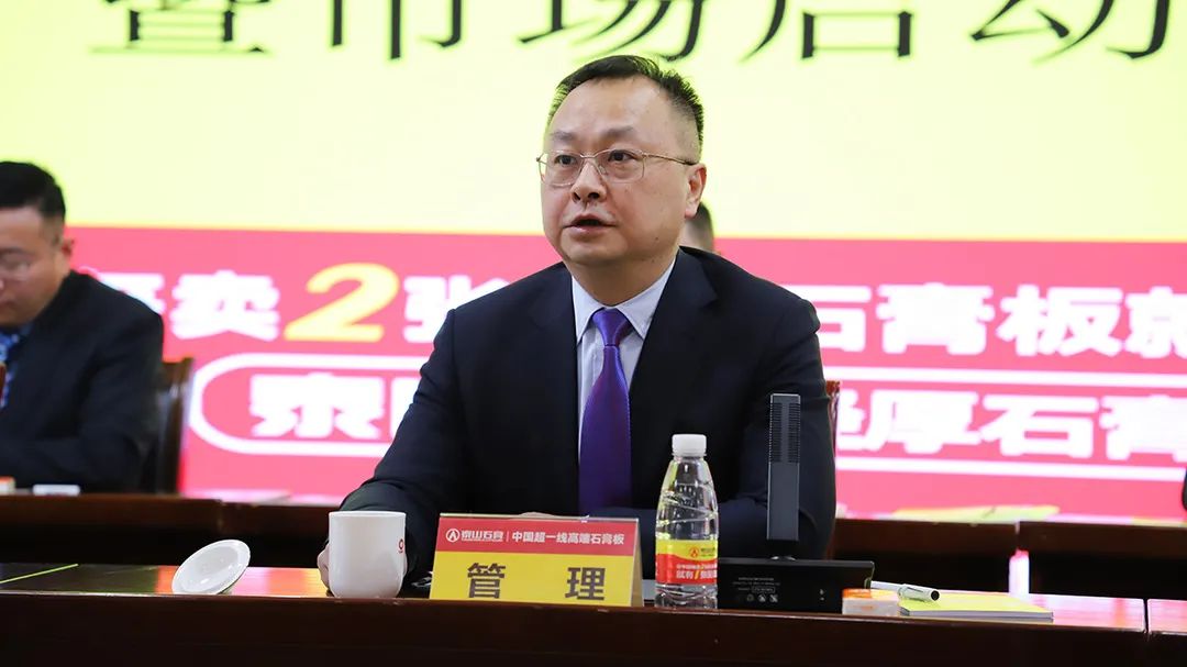 2月15日(ri),公(gōng)司在(zai)總部(bu)三樓禮堂召開2024年(nian)營(ying)銷工(gong)作(zuò)動(dòng)員(yuan)暨市(shi)場(chang)啓動(dòng)大(da)會。中(zhong)國(guo)建(jian)材(cai)股份黨委(wei)委(wei)員(yuan),北新(xin)建(jian)材(cai)黨委(wei)書記、董事、總經(jing)理(li),泰山(shān)石膏董事長(zhang)筦(guan)理(li)出席會議并做講話(hua),泰山(shān)石膏黨委(wei)書記、總經(jing)理(li)任利作(zuò)了(le)題爲(wei)《凝(ning)心聚(ju)力(li) 揚帆起航 奮進(jin)新(xin)業績》的(de)工(gong)作(zuò)動(dòng)員(yuan)報告。公(gōng)司領(ling)導(dao)班子(zi)成(cheng)員(yuan)、區(qu)域(yu)公(gōng)司總經(jing)理(li)、駐泰分(fēn)廠(chǎng)廠(chǎng)長(zhang)、機(jī)關中(zhong)層幹部(bu)、銷售人(ren)員(yuan)代(dai)表現(xian)場(chang)參會,部(bu)分(fēn)領(ling)導(dao)幹部(bu)職工(gong)通(tong)過(guo)線(xiàn)上參會。會議由泰山(shān)石膏黨委(wei)副書記、工(gong)會主(zhu)席張建(jian)春主(zhu)持。